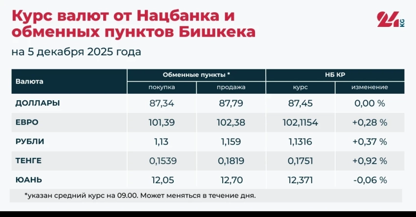 - Официальный курс НБ КР составляет 87,45 сома (без изменений).
