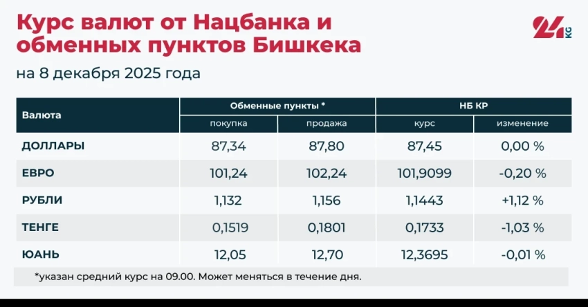 - Официальный курс НБ КР: 87,45 сома (без изменений).