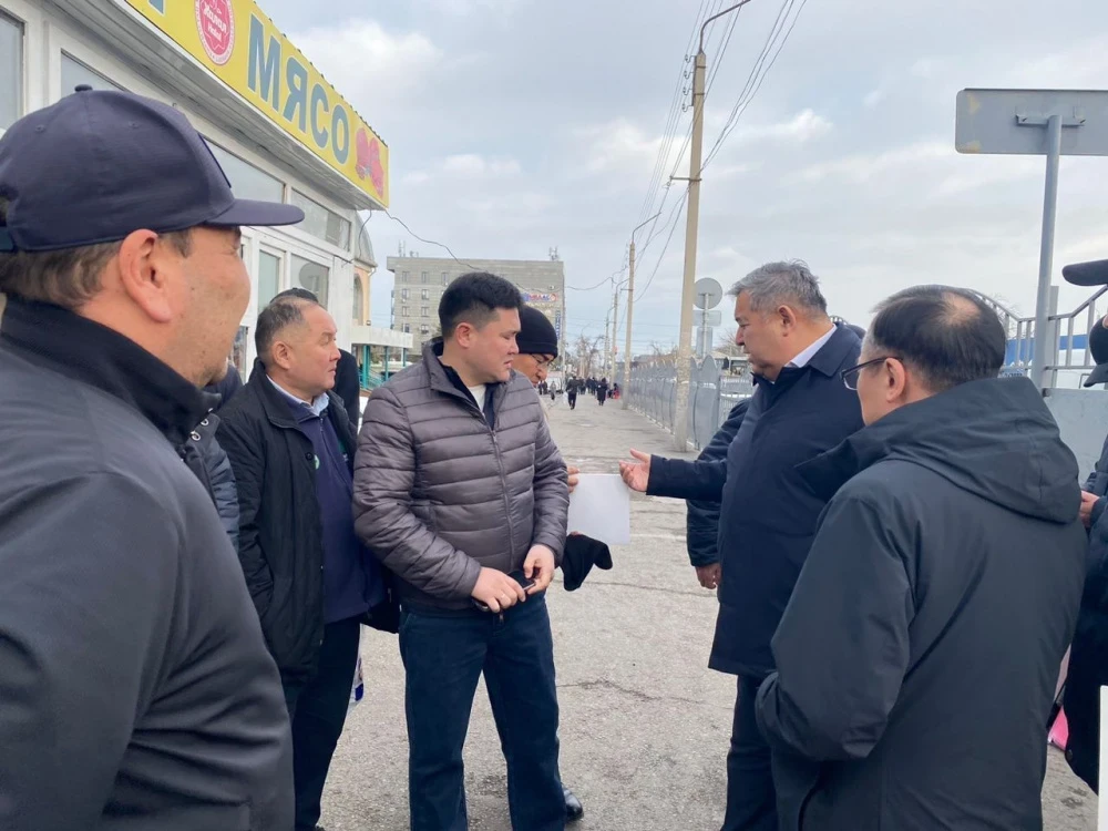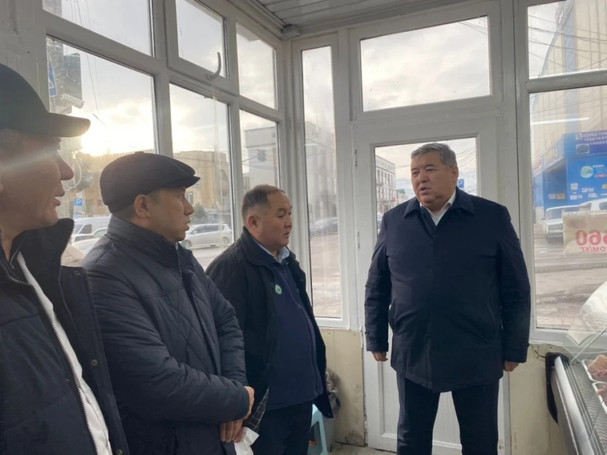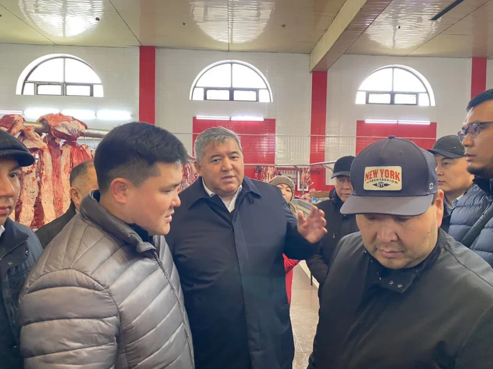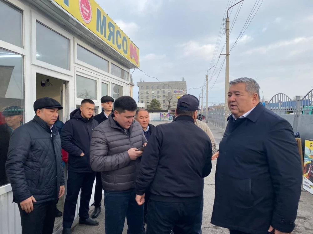 Проверка цен на мясо на Ошском рынке. Фото пресс-службы Минводсельпрома.