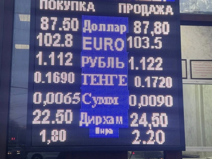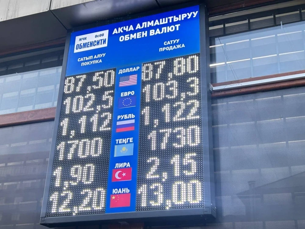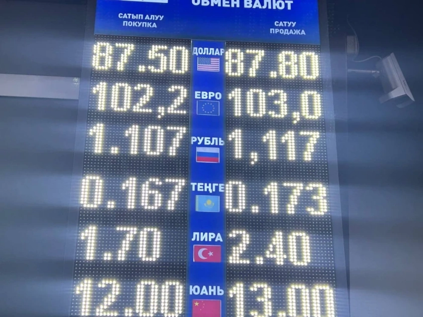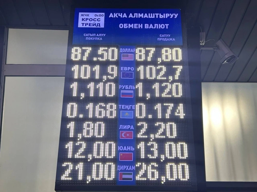 Стоимость доллара возросла: покупка составляет 87,5 сома, а продажа - 87,8 сома.
