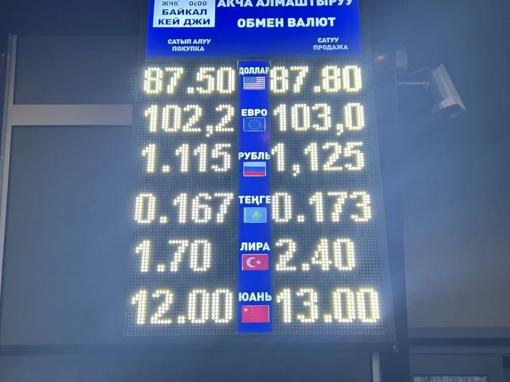 Рубль демонстрирует рост стоимости. При покупке он стоит 1,11-1,12 сома, а при продаже - 1,12- 1,13.