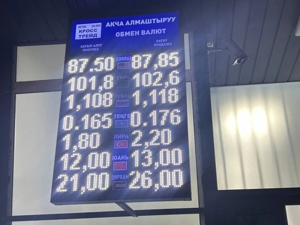 Курс доллара остался без изменений: его покупка составляет 87,5 сома, а продажа - 87,85 сома.