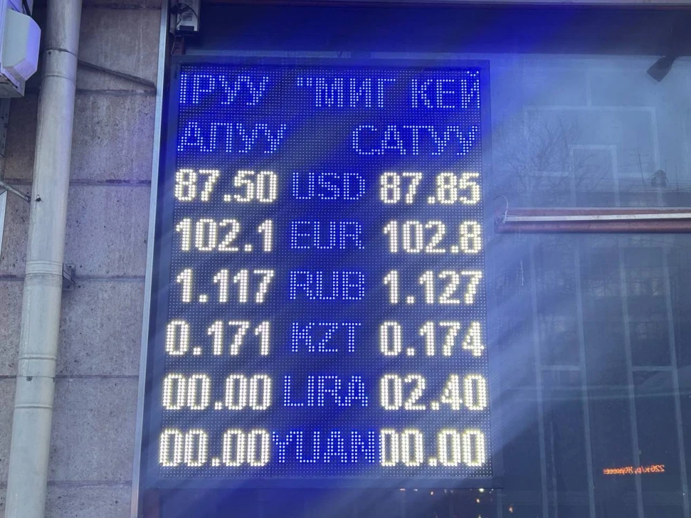 Рубль, между тем, сохраняет свою стоимость: при покупке он стоит 1,11-1,12 сома, а при продаже - 1,12-1,13.