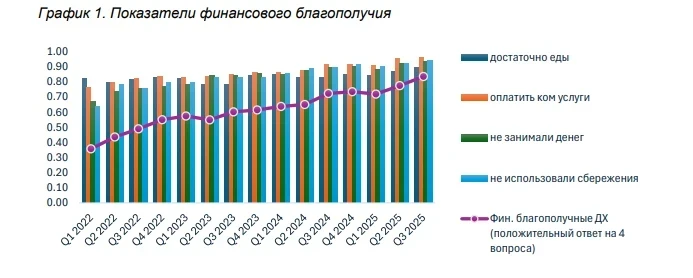 Документ охватывает временной интервал с 2022 года до третьего квартала 2025 года, позволяя сопоставить общие экономические тенденции с личными ощущениями граждан.