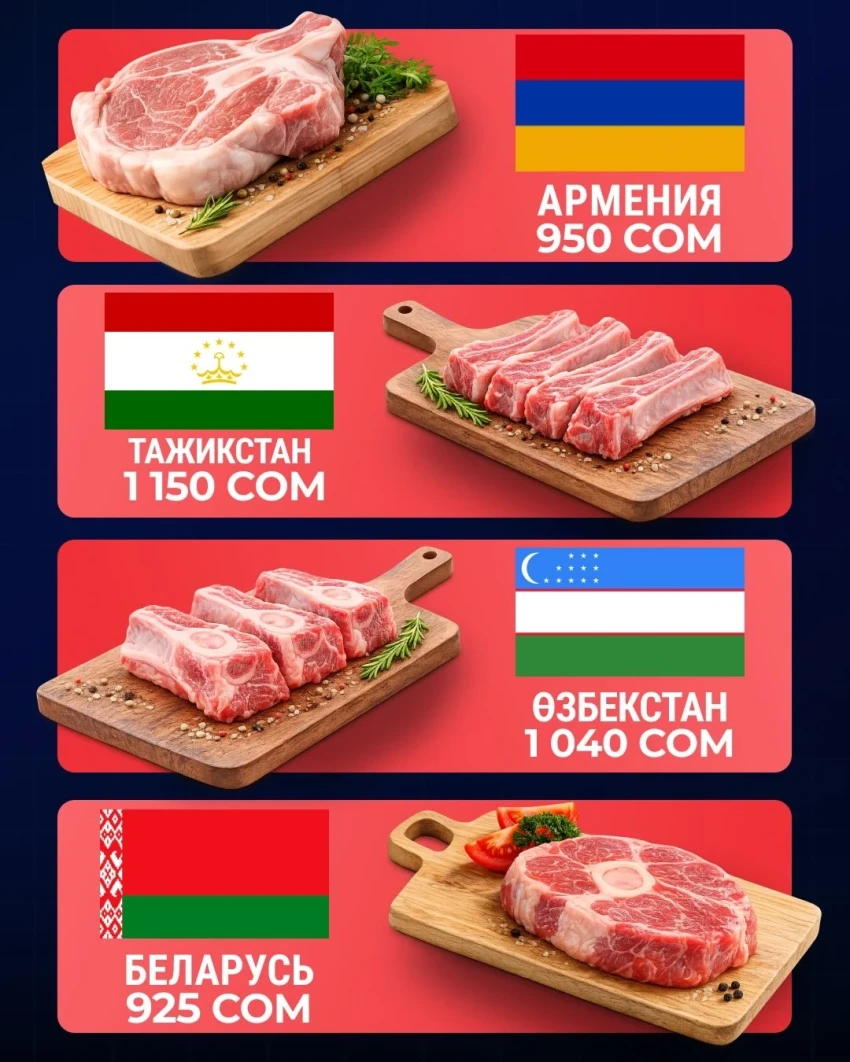 Сколько стоит мясо в Кыргызстане и соседних странах: данные Антимонополии