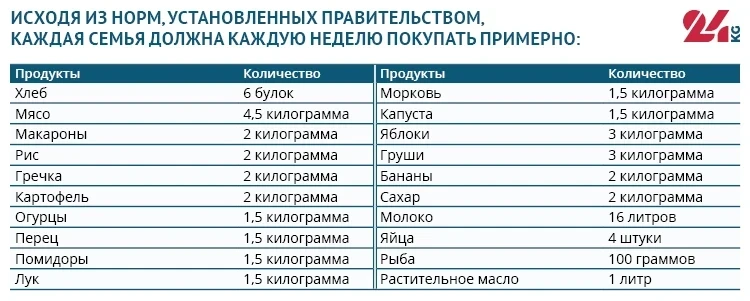 Разумеется, расчеты по потреблению продуктов являются ориентировочными и основаны на утвержденных государством нормах. Не все имеют одинаковые предпочтения в еде, и разные люди могут потреблять разные количества продуктов. Поэтому к нашей корзине не стоит относиться как к универсальной истине. Это, скорее, социальный эксперимент 24.kg.