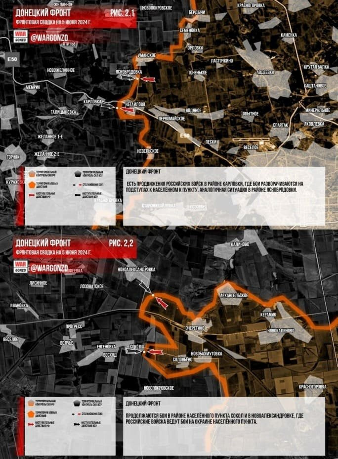 Новая карта боевых действий в зоне СВО на Украине по данным на 05.06.2024
