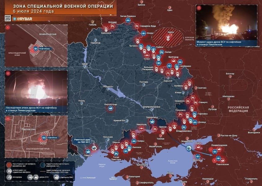 Обзор последних событий в зоне проведения специальной военной операции (СВО) на Украине. Карты боевых действий, которые актуальны на утро сегодняшнего дня, 07.07.2024, представлены в свежем материале smotri.kg.