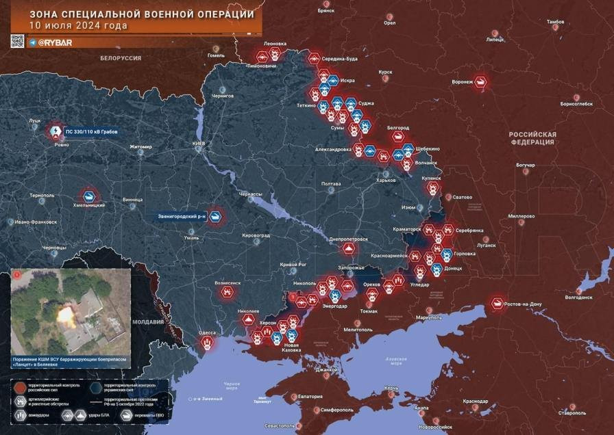 Карта боевых действий на Украине в зоне СВО по состоянию на 11.07.2024