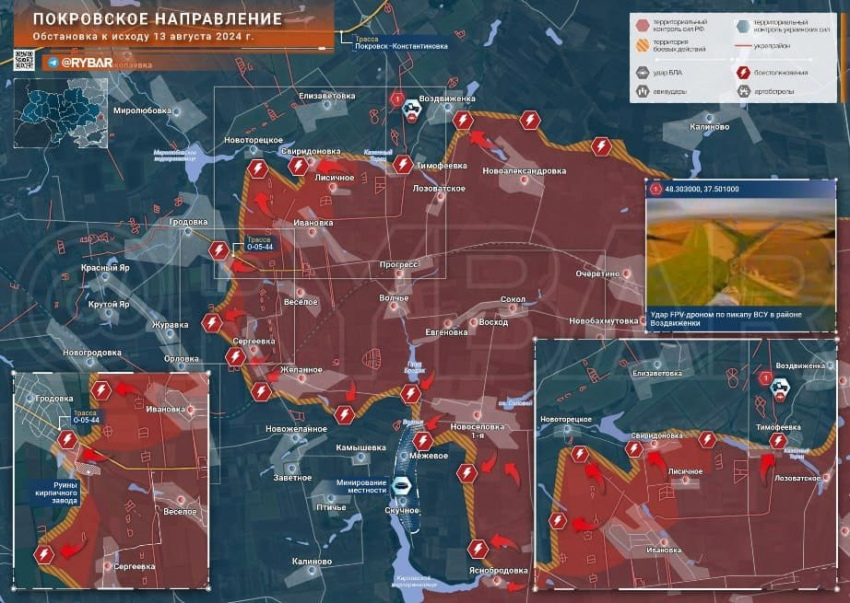 Новая карта боевых действий в зоне СВО на Украине от 14.08.2024