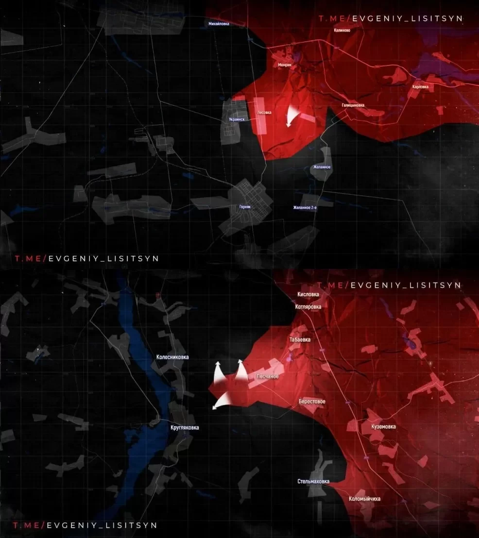 На Покровском направлении в районе Украинска наши парни продвинулись восточнее города на несколько километров на юг и вышли к его южным окраинам, а также продвинулись к северным окраинам города Горняк. Также продолжаются тяжёлые бои в районе Желанного Первого.