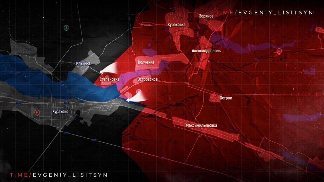 На Покровском направлении совершили успешный рывок со стороны Новодмитровки к Солнцевке и вышли на окраины села. По данным с мест, российским частям удается пробиться к ж/д полотну на холме между Вознесенкой и Берестками. К западу от Селидово российские военные подняли флаг над Новоалексеевкой.
