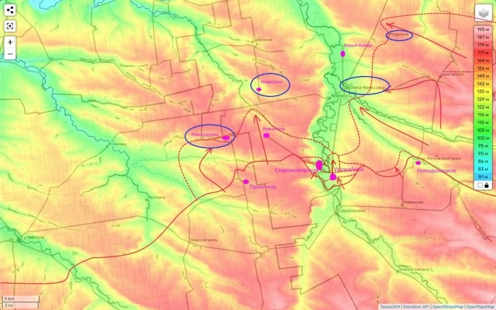 Единственное место, где украинские силы оказывают упорное сопротивление, - это район западной части села Раздоловка. Здесь противник использует опорный пункт, расположенный западнее села, чтобы удерживать позиции. Утрата этого опорника откроет нам путь на населенный пункт Новый Комар, что приведет к перерезанию еще одной важной трассы, связывающей Большую Новосёлку с другими направлениями.