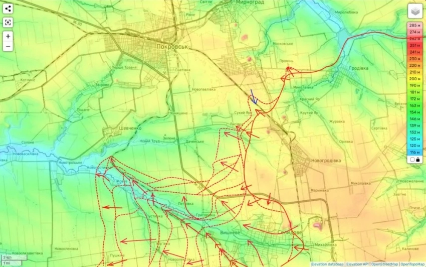Причем последний мы по итогу дня заняли практически полностью, выбив из него гарнизон ВСУ. Более того, южнее Пушкино мы начали движение на следующее село Украинка. До восточных окраин которого нам осталось пройти чуть более 1 км. А западной окраиной это село уже стоит на трассе из Покровска на Курахово, к которой мы упорно и идем. До нее нам осталось пройти чуть более 3 км.