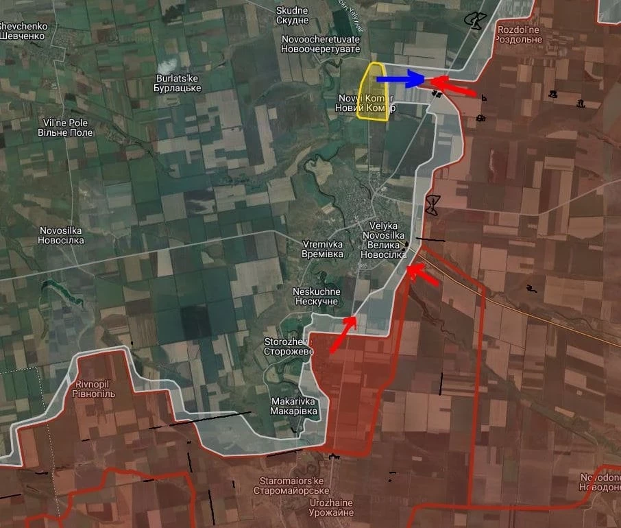 На Великоновосёлковском направлении ВСУ имеют тактические успехи в Новом Комаре.