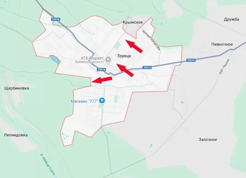 Российские войска за минувшие сутки достигли значительных успехов в Торецке (Дзержинске). Впервые за последнее время наступление было проведено сразу на нескольких направлениях в черте города. Противник, столкнувшись с такого рода атакой, понёс значительные потери на занимаемых позициях и был вынужден отойти фактически по всему городскому фронту.