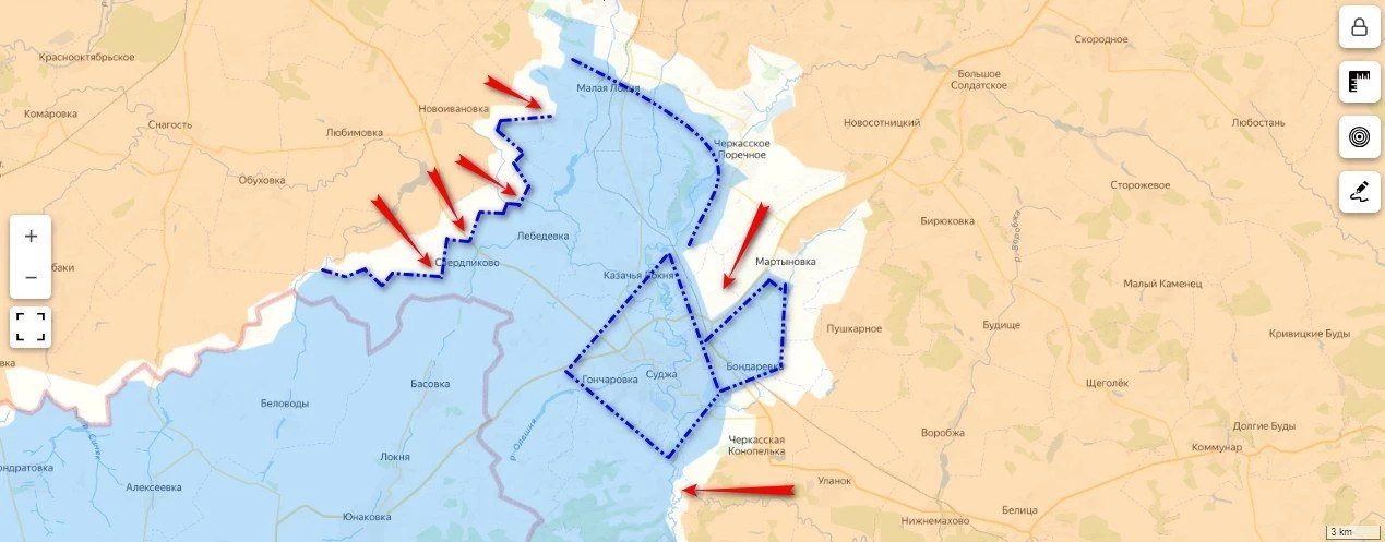В свою очередь PulsePen информирует о том, что в Курской области без существенных изменений за последние сутки. На Курском направлении российские бойцы подняли знамя 155-й бригады морской пехоты на востоке Новоивановки, подтвердив ее полное освобождение. О том, что населённый пункт освобождён, было известно и ранее, но теперь - с кадрами объективного контроля. Судьба Русского Поречного и Черкасского Поречного до сих пор неизвестна. Ранее сообщалось, что враг отправил туда дополнительные резервы для удержания позиций, чтобы защитить восточный фланг своих сил в Малой Локне.