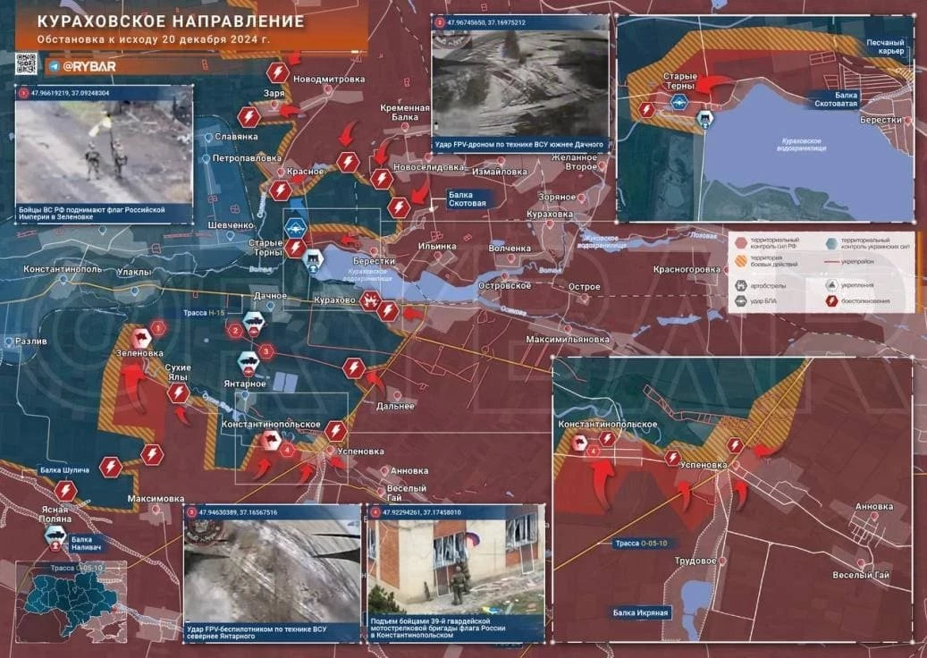 На Кураховском направлении российские войска освободили Зеленовку и Константинопольское, практически полностью выбив ВСУ с правого берега реки Сухие Ялы. Также появились подтверждения перехода под контроль ВС РФ Старых Тернов.