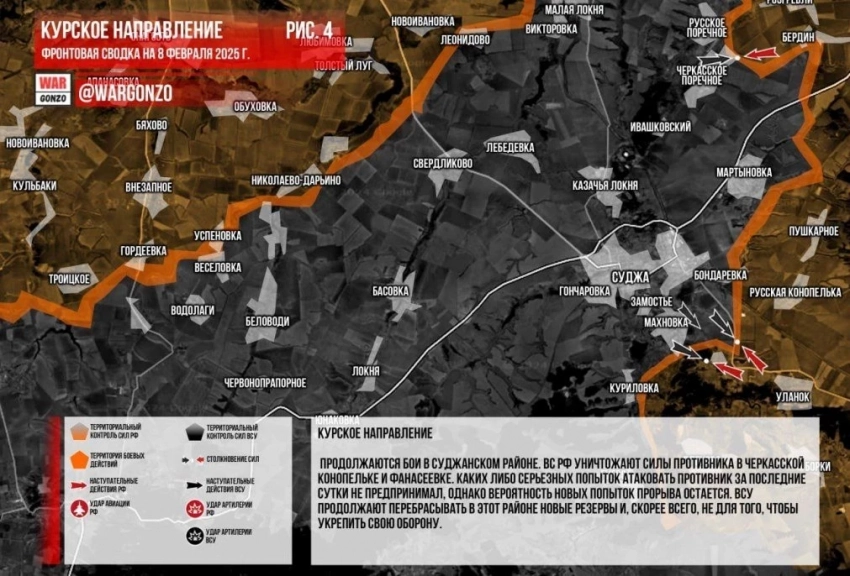 Ожесточённые бои в Курской области: ВС РФ отражают атаки противника, свежие данные на 8 февраля 2025