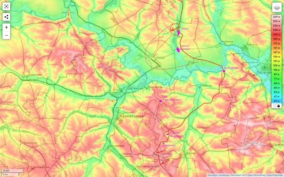 Очень важные подвижки. В чем их суть. Как я уже ранее говорил (карта 2), если мы хотим обрезать коммуникации Северской группировки противника, нам надо брать под контроль дороги вокруг Рай-Александровки. Этот н.п. ключ ко всему, что расположено восточнее.