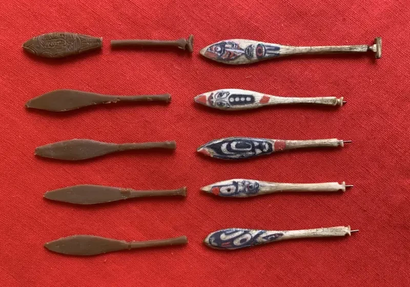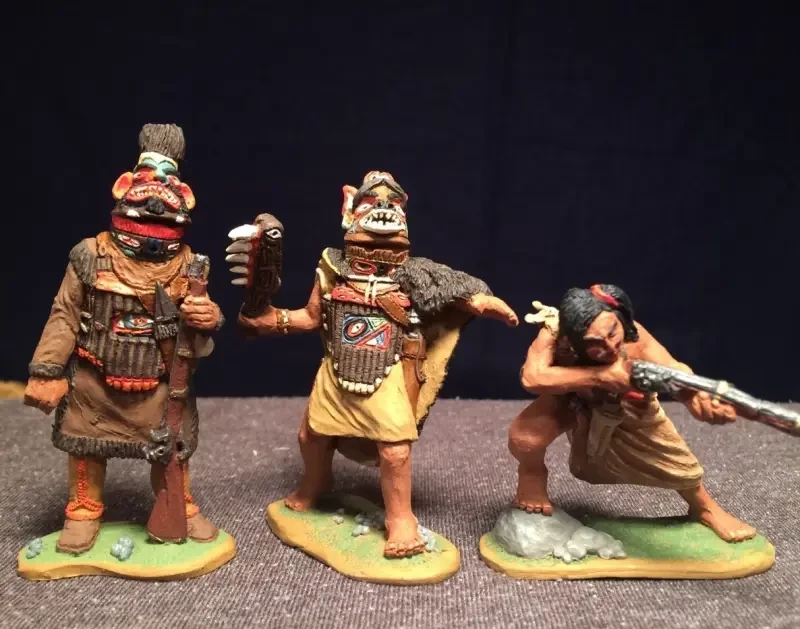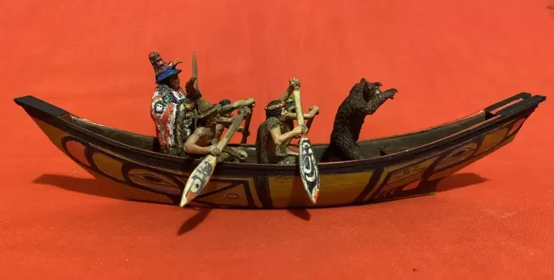 Но тут мне на помощь пришёл в Интернет и премного удивил предоставленной мне информацией. Оказывается, у нас в России существует компания-производитель фигурок солдатиков из мягкой пластмассы (для игры детям!), которая называется «Студия «Человечек». И вот она-то, как оказалось, делает фигурки индейцев тлинкитов, как занятых вполне мирными делами, так и облачённых в пышные боевые доспехи и с оружием в руках. Её руководитель Иван Костенко сам же их и ваяет, сам и штампует, а продаются его фигурки во многих «магазинах солдатиков» в РФ. Причём самое интересное, что к одному из наборов фигурок он сделал ещё и ладью, да ещё и покрыл её борта прихотливыми узорами. Ну так и это ещё не всё, как оказалось!