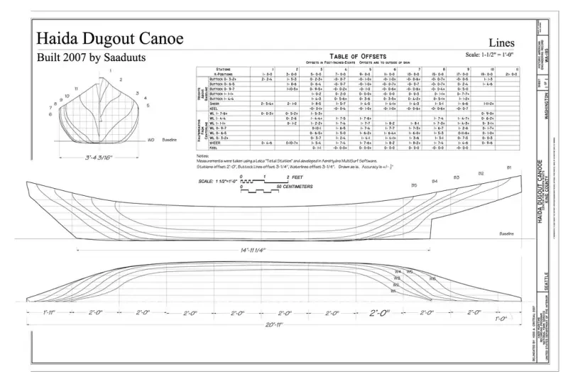 Теоретический чертёж пироги хайда
