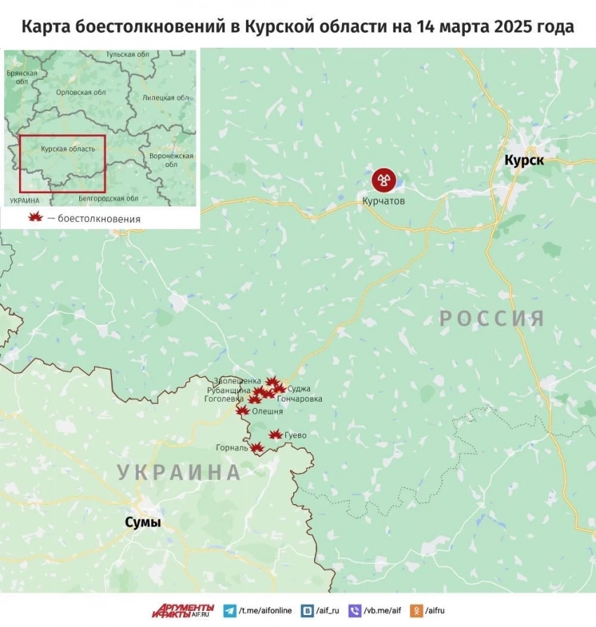 Свежая карта боевых действий в Курской области. Данные на сегодняшний день, 14.03.2025