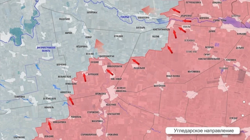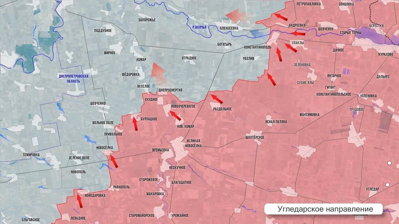 На Угледарском фронте ВС РФ вклинились в оборону противника между Шевченко и Вольным Полем, заняв господствующие высоты и буквально смяв правый фланг обороны ВСУ в Шевченко. Весёлое наши подпирают с юга, взяв под контроль водокачку, птицеферму и высоты в лесополосах, а также охватывают село с востока. ВСУ пытаются огрызаться контратаками, но тщетно.