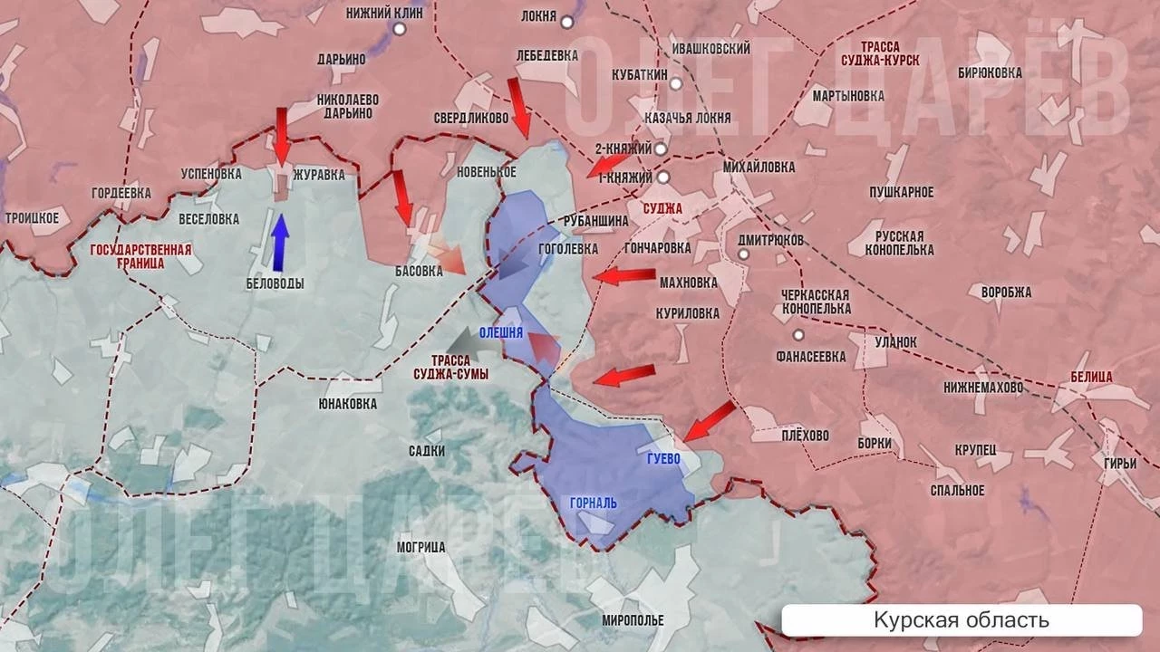 В свою очередь Telegram-канал "Северный ветер" пишет о том, что на Сумском направлении ожесточенные боевые действия продолжаются в районе Гоголевки и в лесных массивах вокруг Гуево.