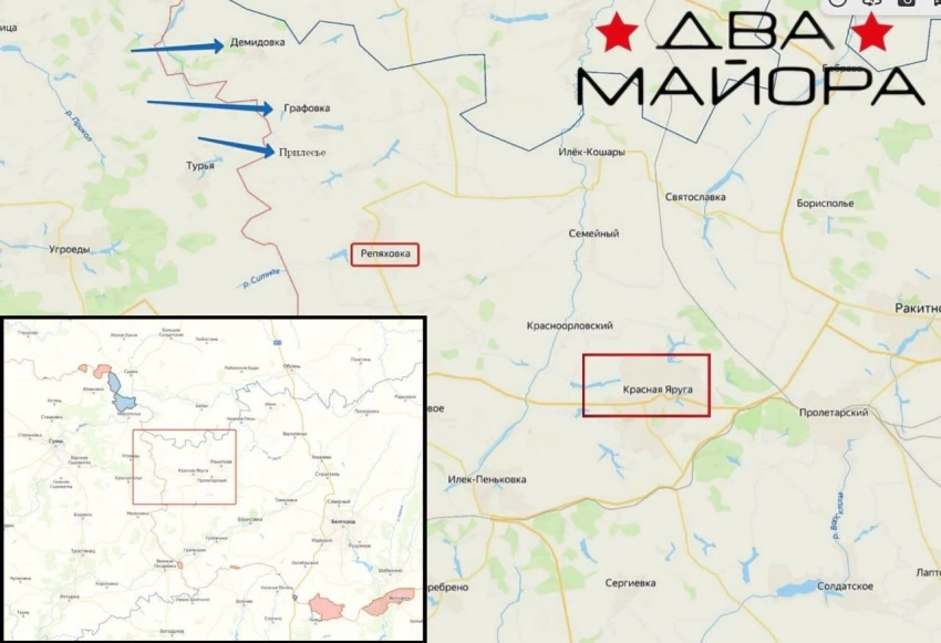 В Белгородской области вчера основные события развернулись у Демидовки, которая, судя по сообщениям с мест, переходила из рук в руки. В селе к ночи присутствовали силы обеих сторон, шли бои.