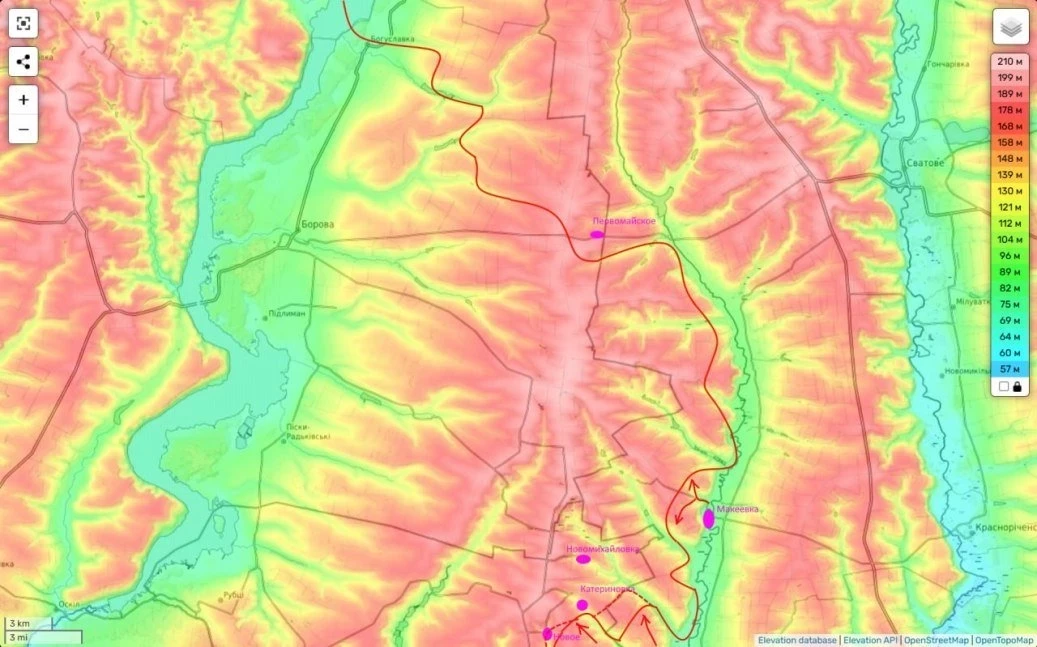 Наши части прямой сейчас уже ведут бои в Новом и Колодезях. И пытаются прорваться через Катериновку на Новомихайловку. И в случае успеха, фронт ВСУ здесь будет прорван, а гурппировка противника за Осколом еще раз рассечена.