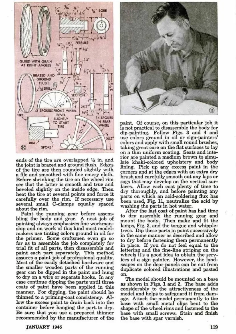 У каждой нации всегда был свой исторически сложившийся и потому любимый тип транспорта. В Англии и США таким транспортом стал дилижанс. Ну и, разумеется, его модель была предложена журналом «Популярная механика» для изготовления ещё в 1946 году. «Дилижанс» – культовый фильм 1939 года, «Гордость и предубеждение» (1995), ну и, разумеется, «Наш человек с бульвара Капуцинов» (1987), ну никак не могли обойтись без этого вида транспорта. В январском номере «Популярной механики» было опубликовано сразу несколько статей о том, как сделать его модель.