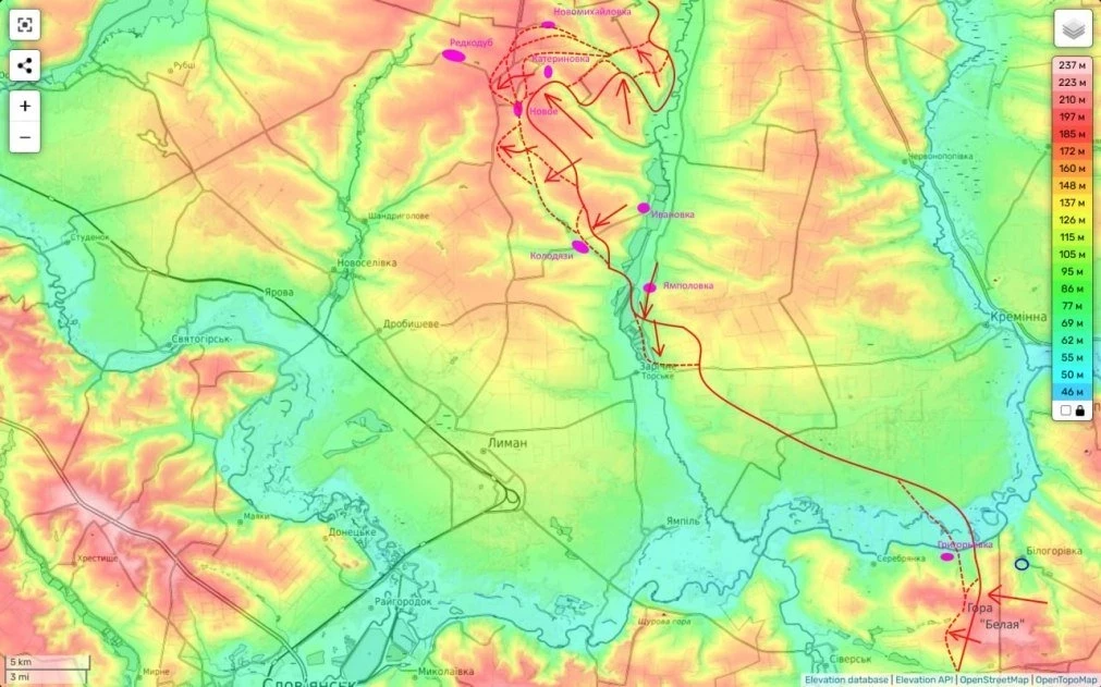 После занятия Редкодуба и Новомихайловки, как поясняет Подоляка, очевидной следующей целью станет Андреевка и далее Изюмское. В свою очередь со стороны Макеевки это Грековка. После этого российские плацдармы здесь соединяться окончательно и далее российские бойцы будут иметь очень хорошие стартовые позиции для следующего рывка на запад, либо отрезая Боровую от основных сил, либо напрямую на этот населённый пункт.
