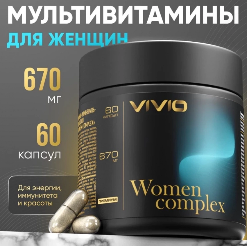 Vivio Women Complex — это мощный мультикомплекс для женщин, поддерживающий здоровье, энергию и красоту. Содержит 21 витамин и минерал, включая биотин (витамин B7), который активно улучшает состояние волос, кожи и ногтей. Комплекс способствует укреплению иммунитета, улучшению обмена веществ, а также поддерживает женскую репродуктивную систему и нормализует эмоциональный фон. Такой продукт заслуженно попадает в топ бадов для волос благодаря сбалансированной формуле для женского здоровья.