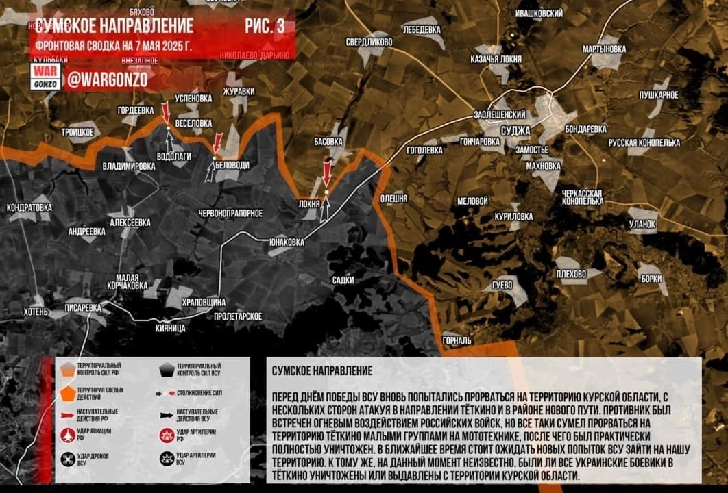 Главная » Эксклюзив » В Курской области идут ожесточённые бои в Глушковском районе: карта боевых действий по состоянию на 07.05.2025