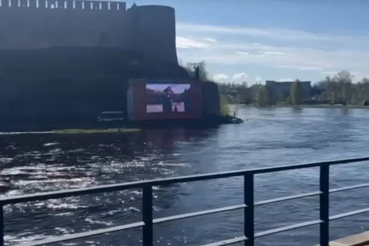 В разделенных неширокой рекой русском Ивангороде и эстонской Нарве в День Победы произошло своеобразное противостояние двух мировоззрений. Тогда как на набережной Ивангорода был установлен развернутый в сторону Эстонии экран, на котором транслировался парад Победы в Москве, власти Нарвы не нашли ничего лучше, чем разместить на крепостной стене украинские флаги и провокационные баннеры русофобского содержания.