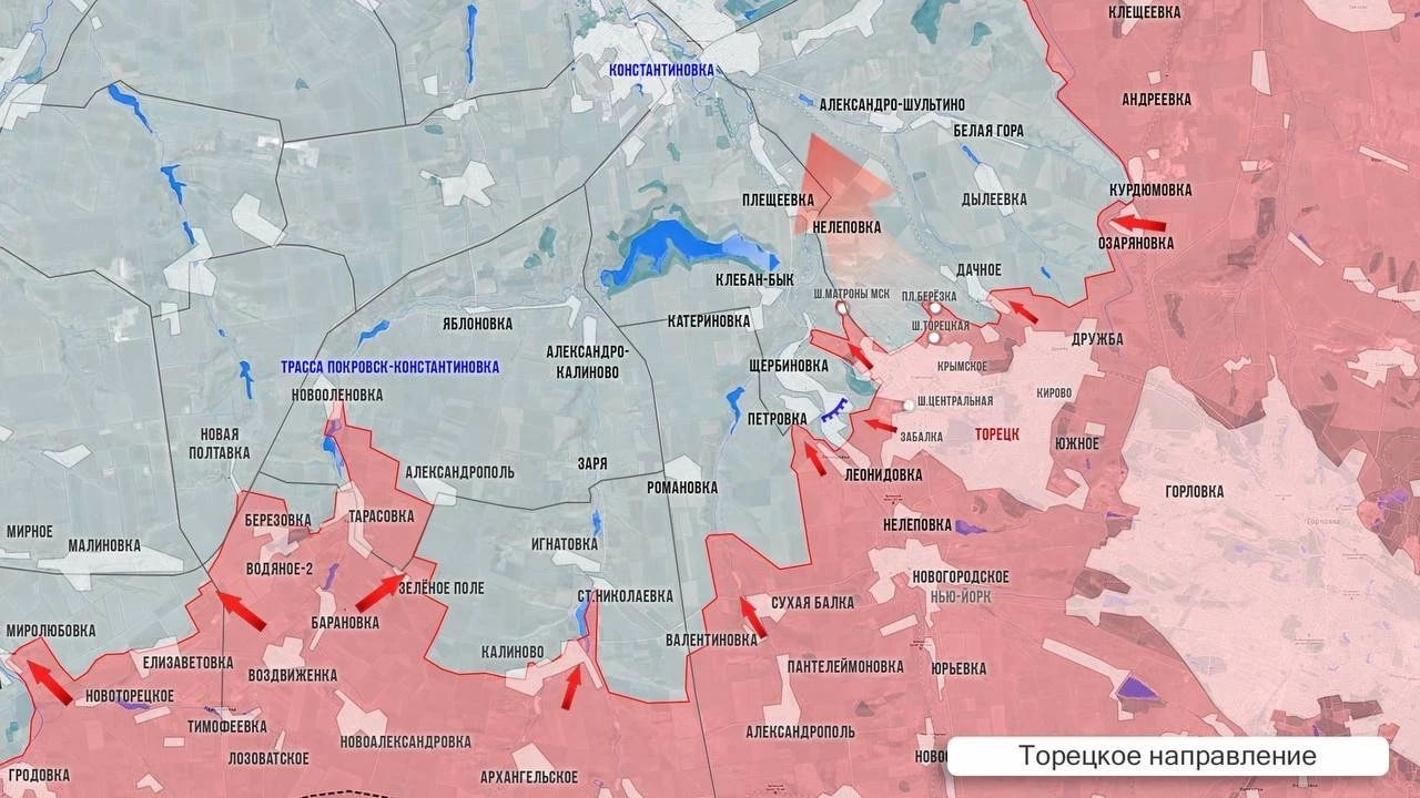 На западном фланге Торецка отбита контратака врага в районе Новооленовки. Не стихает сражение в районе Сухой Балки. Как российская, так украинская сторона сообщают о позиционных боях в районе Торецка. Отражена атака ВСУ в микрорайоне «Фомиха».