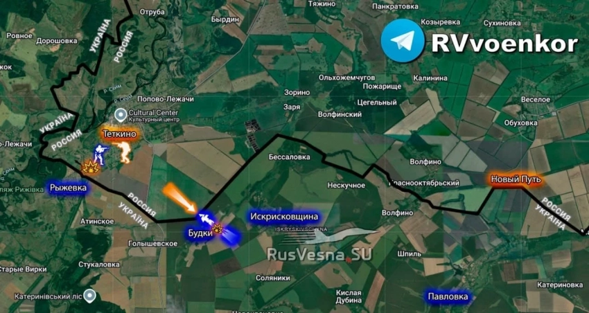 Пехота ВСУ из Сумской области с утра снова пытается прорваться к Тёткино со стороны сумских посёлков Будки/Искрисковщина и из Рыжевского леса.