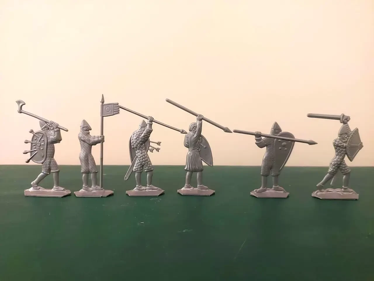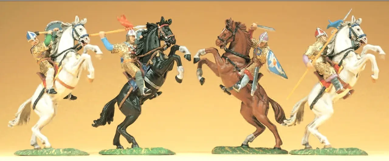 Норманны-всадники. Так выглядели все рыцари-феодалы в Европе этого периода. Компания Preiser (Elastolin) ФРГ. 90-е гг. ХХ в. Компания номер один среди производителей солдатиков