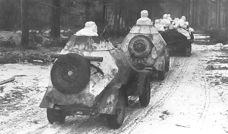 Таким образом, задачи, ранее возлагаемые на легкий открытый автомобиль-разведчик (кроме навязанной ему буксировки пушек), от безысходности пришлось выполнять массивному неповоротливому броневику с посредственной проходимостью.