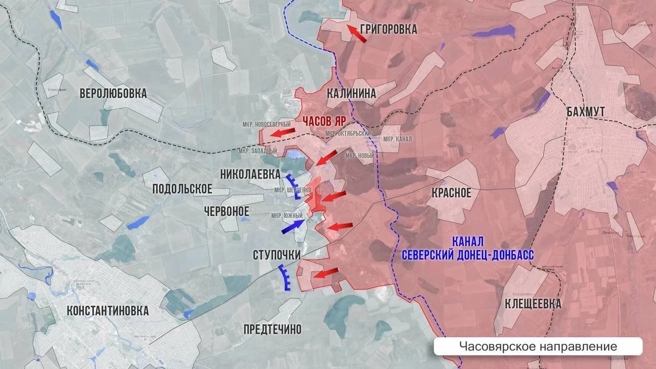 На западном фланге Торецкого направления идут упорнейшие бои в Полтавке и Русин Яре. Противник стягивает сюда доступные резервы, чтобы удержать важный рубеж обороны. «Карман» южнее Зари, как и само село, фактически зачищены. Продвигаясь в направлении на Александро-Калиново и Катериновку, ВС РФ смогут зайти с фланга в Петровку и Щербиновку. В северной части Торецка сообщают об освобождении п. Дачное и п. Дылеевка, а также о тактических успехах в с. Дылеевка.