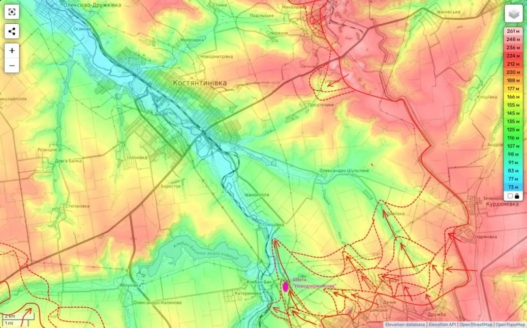 На Константиновском направлении в настоящее время активная фаза боевых действий ведётся юго-западнее Константиновки.