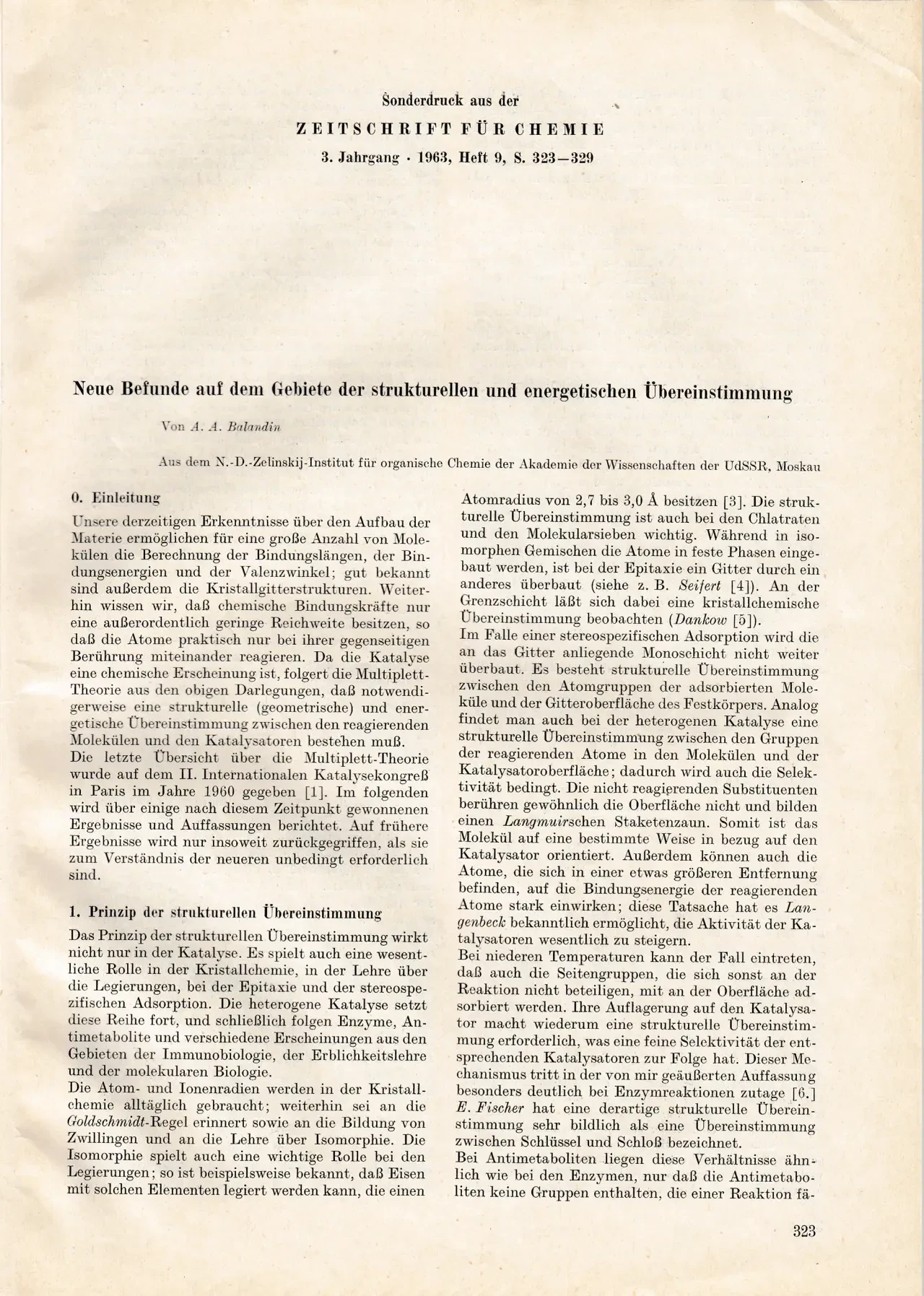 Оттиск статьи Баландина А.А. «Новые данные из области структурного и энергетического соответствия». КККМ ВФ 8765/39