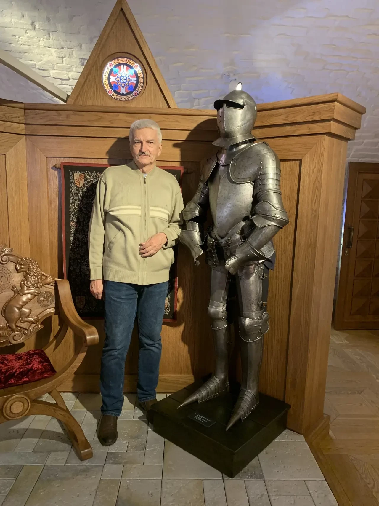 Автор и рыцарские доспехи из коллекции А.С. Акишева, который предоставил и их, и все прочее вооружение для показа на этой выставке