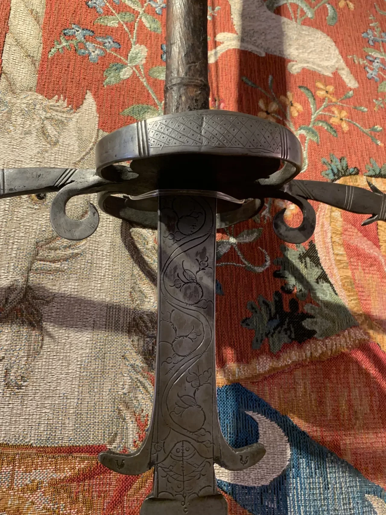 Рукоятка с характерным кольцом и парирующими крюками