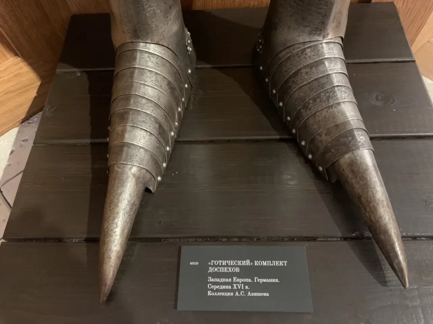 А это его ноги и подпись, с которой я не согласен. Подобные остроносые «туфли» были характерны для рыцарей более ранней эпохи. Ну, скажем, в 1490 году их еще носили, а вот позднее их заменили сабатоны типа «медвежья лапа»