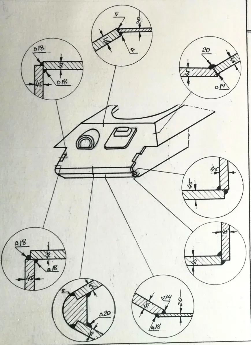 1. Соединения верхней и нижней лобовых деталей корпуса;