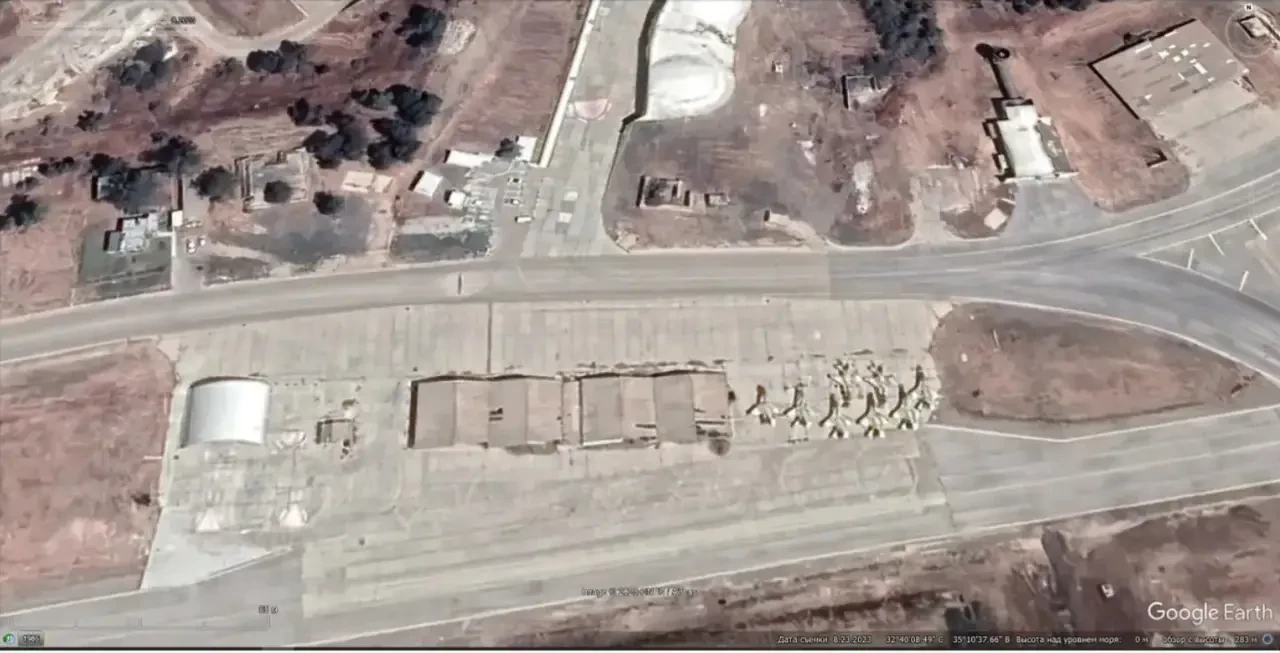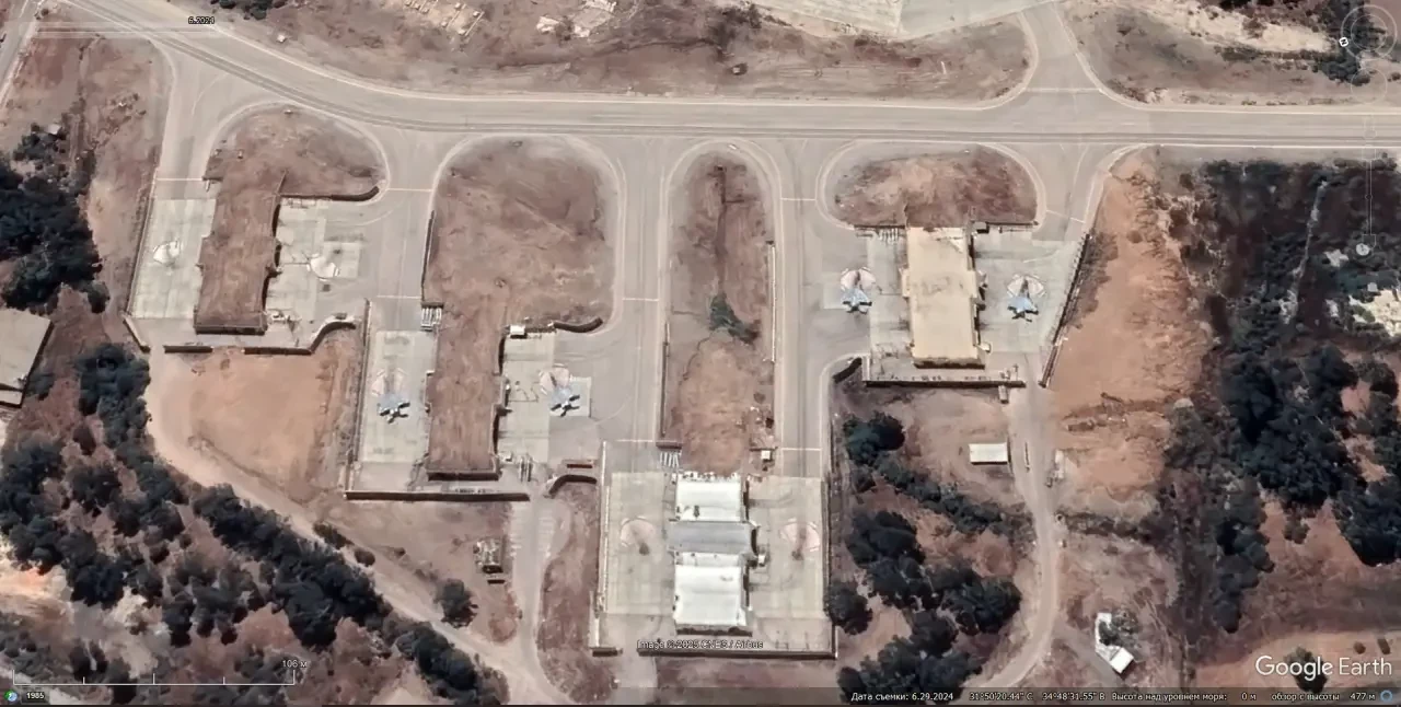 Спутниковый снимок Google Earth: дежурные израильские истребители F-15 на авиабазе «Тель-Ноф». Снимок сделан в июне 2024 года