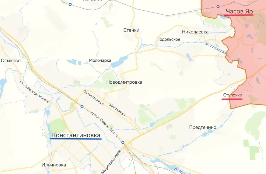 Также глава ДНР Денис Пушилин сообщил о продвижении российских войск в Часовом Яре и в районе расположенного неподалеку от города населенном пункте Ступочки.