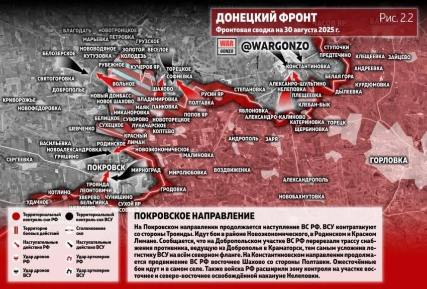 Главная » Эксклюзив » ВС РФ ведут бои в районе Новоэкономического на Покровском направлении: свежие данные от 30.08.2025